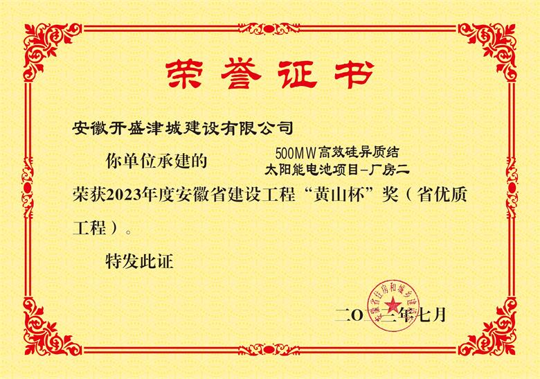 • 黃山杯--“500MW高效硅異質(zhì)結(jié)太陽能電池項(xiàng)目-廠房二”
